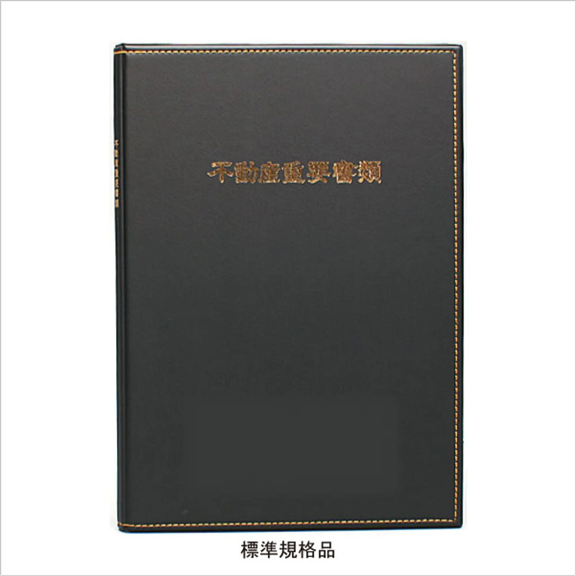 - 金箔で「不動産重要書類」(隷書体)のタイトルが、オモテ表紙及び背表紙に印刷されております。