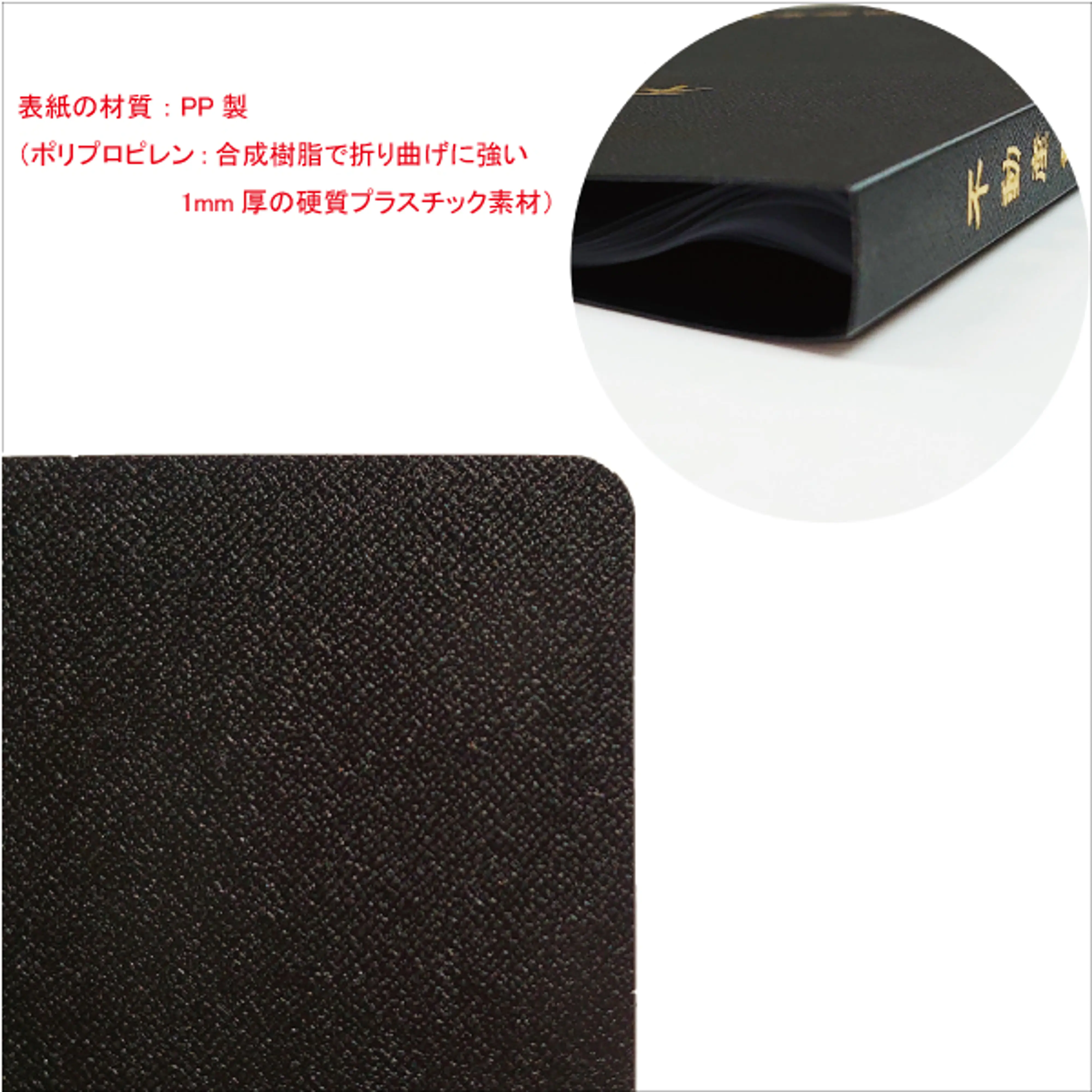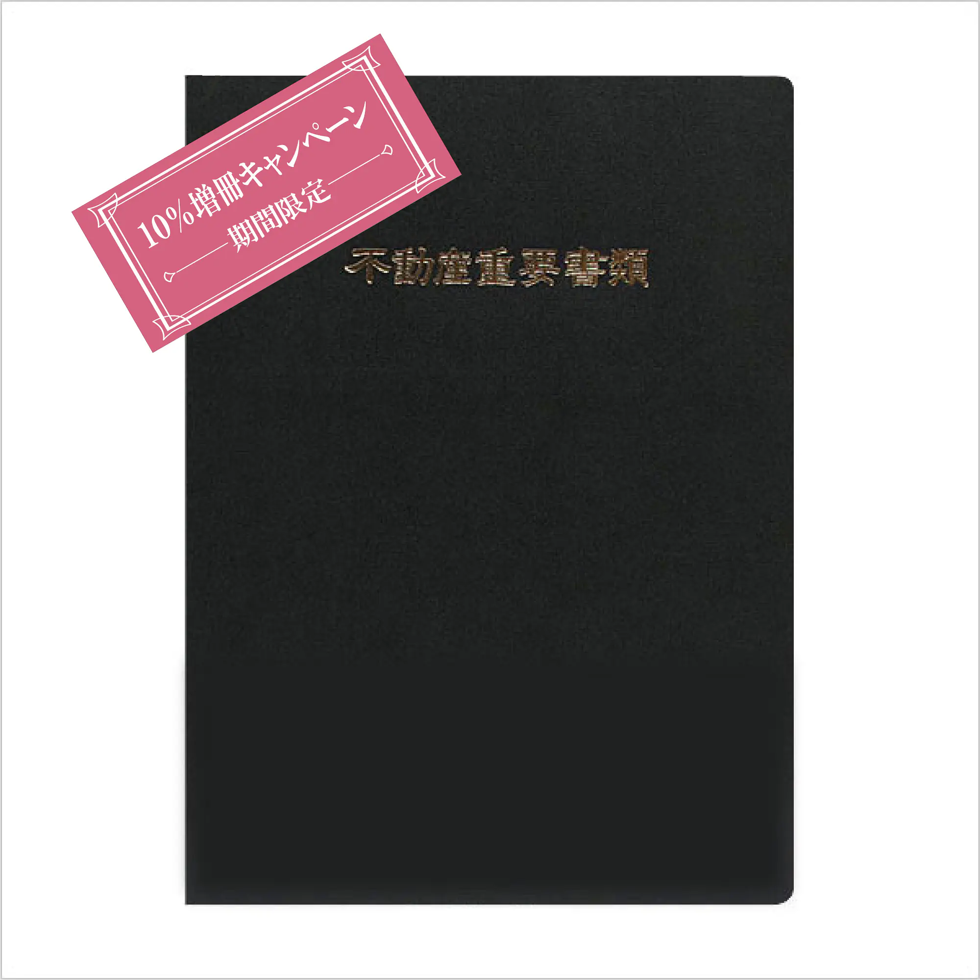 - 金箔で「不動産重要書類」(隷書体)のタイトルが、オモテ表紙及び背表紙に印刷されております。