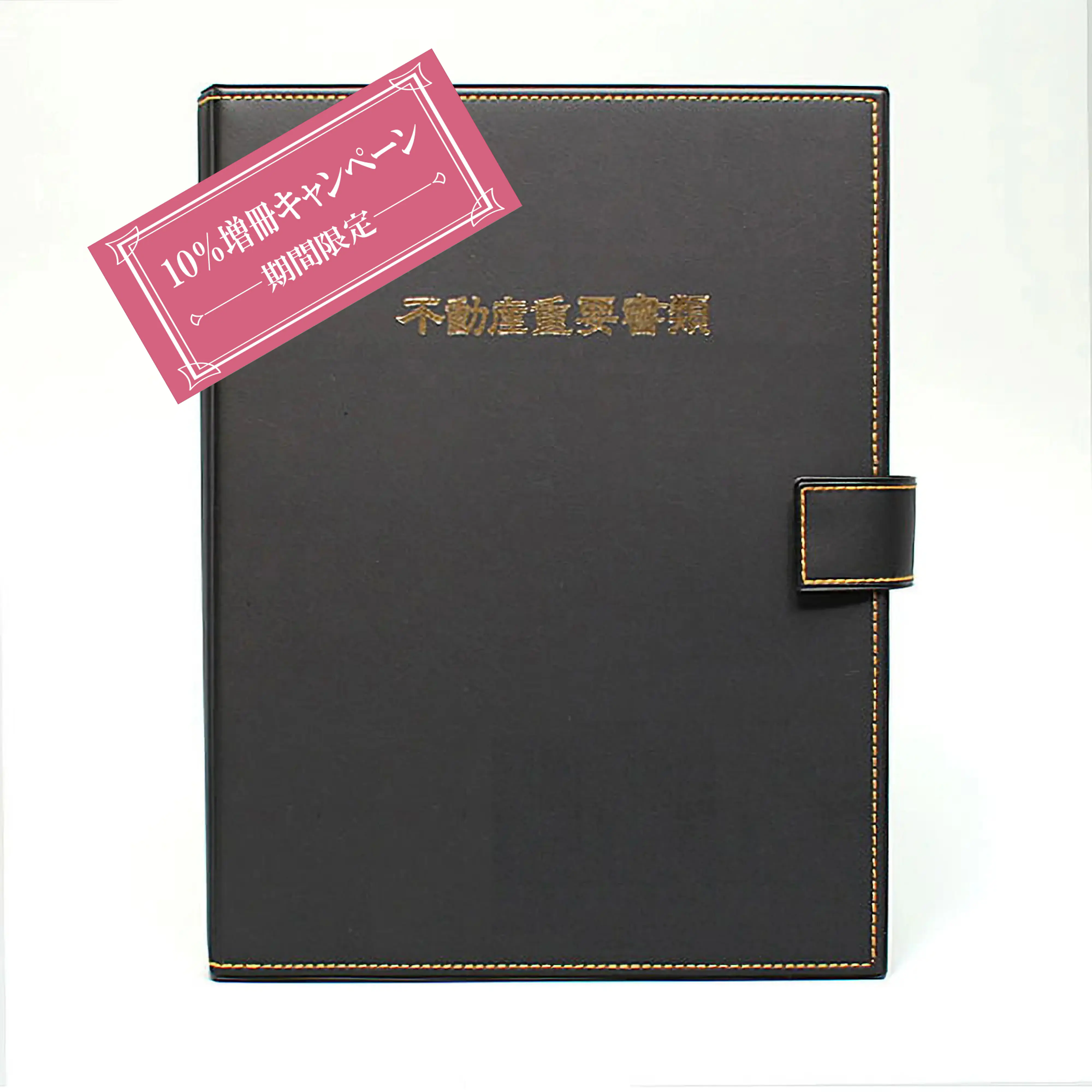 - 金箔で「不動産重要書類」(隷書体)のタイトルが、オモテ表紙及び背表紙に印刷されております。