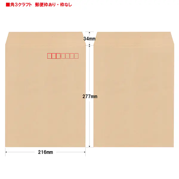 角3Kカラー(10色種類)85g/m²封筒社名入れ印刷